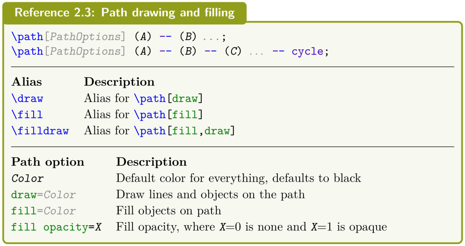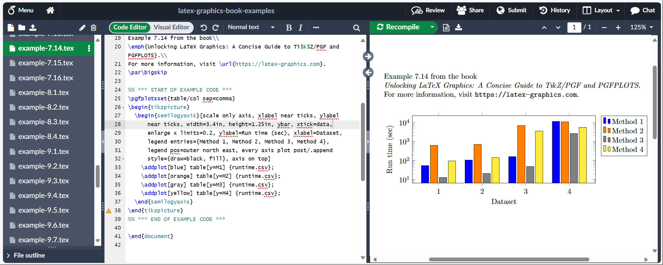 The source code for all examples from the book is open source and available on Overleaf and GitHub. Download and play with the samples to get hands-on experience or use them as a starting point for your own graphics.